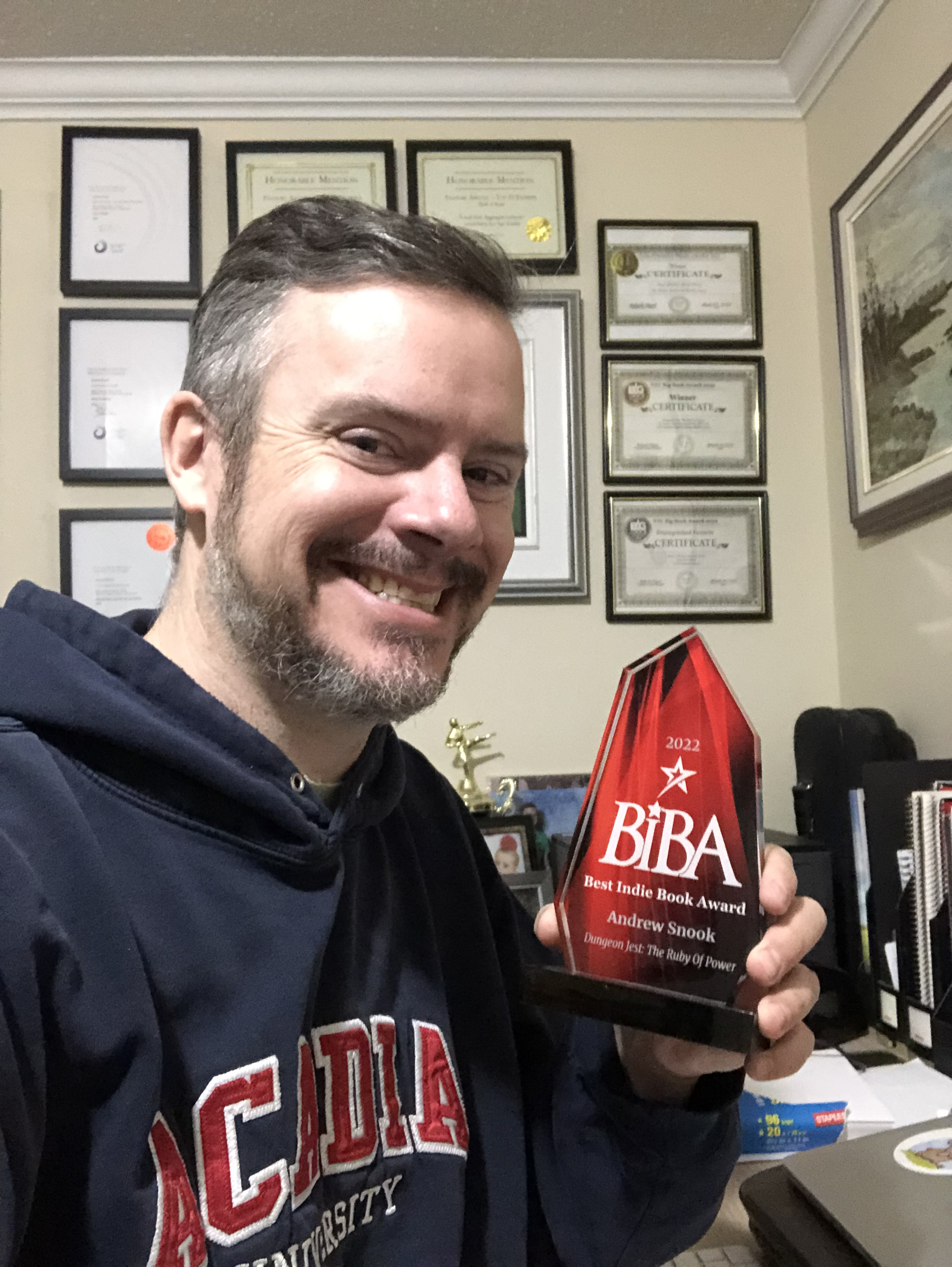 In his spare time, Snook is an avid fiction writer and reader. He has published four works of fiction to date: Remy’s Dilemma (2015); Remy’s Dilemma: Special Delivery (2019); Dungeon Jest: The Ruby of Power (2022); and The Snookie-Cookie Crew and the Cranberry Cookie Cruncher (2022). Snook’s fiction and business writing have won him a combined 22 national and international awards, which is neat, but he's happier knowing he made someone laugh out loud while reading his books during an inappropriate moment.